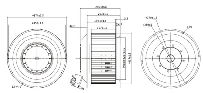 單進風前傾式離心風機根據(jù)風機外形可分為蝸殼前傾式離心風機和常規(guī)前傾式離心風機兩種。蝸殼前傾式離心風機共有120mm、133mm、140mm、150mm、160mm、180mm等六種。常規(guī)前傾式離心風機有200mm、225mm、250mm、280mm、315mm、355mm、400mm、450mm等八種。