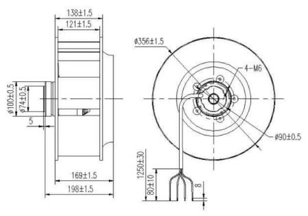 ?、诮M成部件:高效外轉子交流電機、后傾式圓弧形鋁合金葉輪、免維護深溝球滾珠軸承、靜電粉末噴塑轉子。