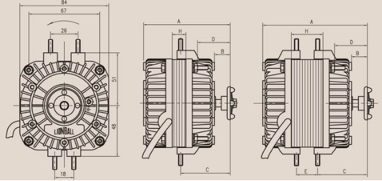 該款電機裝有兩個支架安裝角,一側的螺絲間距為18mm,與之相對應的一側螺絲間距為26mm。根據(jù)電機鐵芯厚度和繞線參數(shù)的不同,共有輸出功率為3W到34W等9種型號的電機供客戶選擇。額定電壓有220~240V,50/60Hz和 110~115V,50/60Hz兩種。對于客戶需求的不同的引出線長度、前后端蓋的樣式、后端蓋是否帶螺紋孔、特殊的使用環(huán)境等均能按要求設計定做。為最大限度的發(fā)揮電機性能,我司可提供風葉、安裝支架、網(wǎng)罩、法蘭等產品附件,購買前請詳細說明風葉氣流風向和傾斜角度。產品可作為商業(yè)冷柜冷庫、制冰機、冷風機、冷水機、冷凝機組、中央空調、取暖器、啤酒機、攪拌機等設備的理想配套產品。